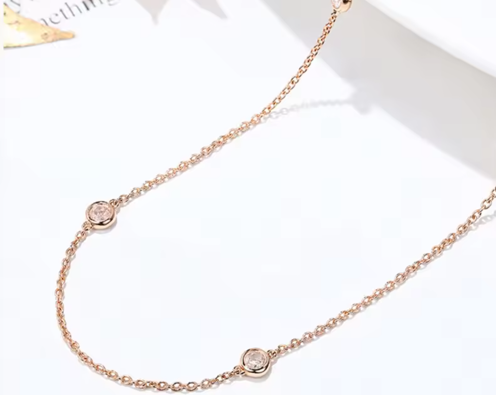 「つけていることを忘れるほど軽やかに。18Kのネックレスはシンプルだが確かに胸元を照らす、私だけの宝物はエレガントに過ごす日々のひと時の幸せを演出してくれる。」